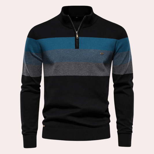 Fabian – Elegant striped knit sweater with practical quarter zipper