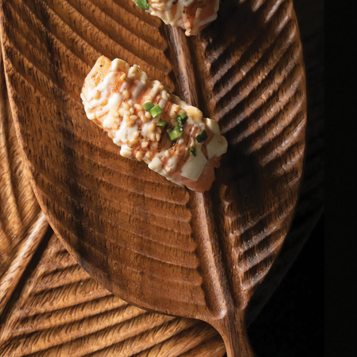 Forvandl dit porcelæn med den elegante bakke i mørkt valnøddetræ med blade. Den fint udskårne bakke i mørkt valnøddetræ vil tilføre et luksuriøst præg til dit hjem. Bladformen symboliserer naturens varige skønhed og skaber et varmt midtpunkt til dine værdsatte sammenkomster. Oplev eksperthåndværk, der garanterer mange års daglig brug.